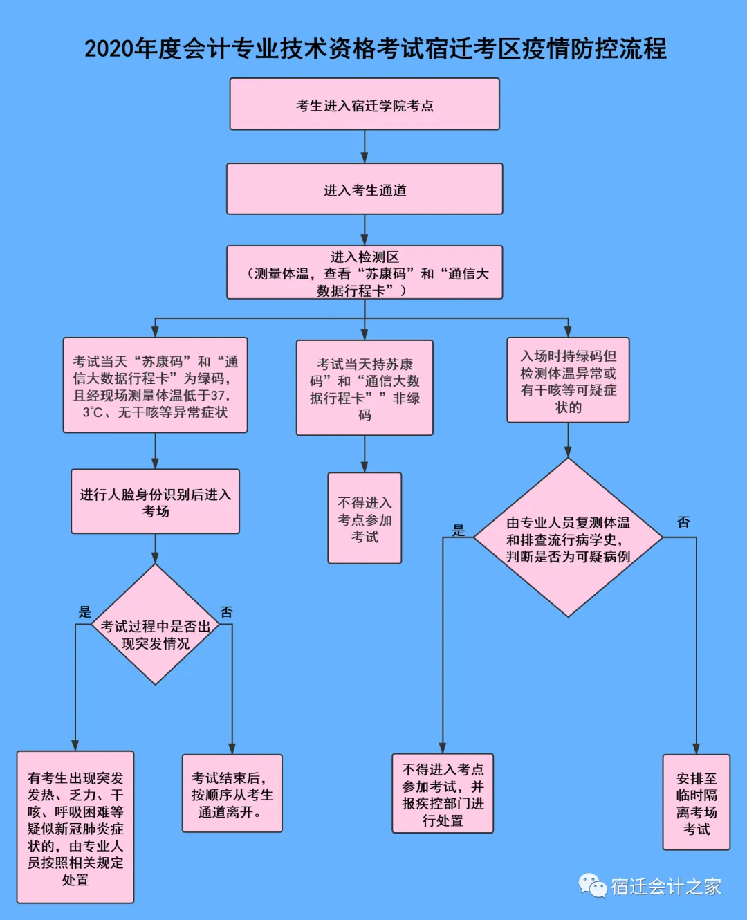 根据江苏省财政厅《关于调整2020年度全国会计专业术资格考试(江苏考区)考务日程安排及有关事项的通知》(苏财会〔2020〕17号)精神,宿迁考区会计资格考试定于8月29日至9月7日期间进行。为平稳有序做好宿迁考区疫情防控及考试组织工作,守住不发生区域性聚集性疫情传播风险底线,确保广大考生及考务人员身体健康和生命安全,根据省财政厅、人社厅、卫健委《关于印发2020年全国会计专业技术资格考试江苏考区新冠肺炎疫情防控工作方案的通知》(苏财会〔2020〕21号)精神和我市常态化疫情防控工作需要,现就宿迁考区考生相关防疫要求公告如下: